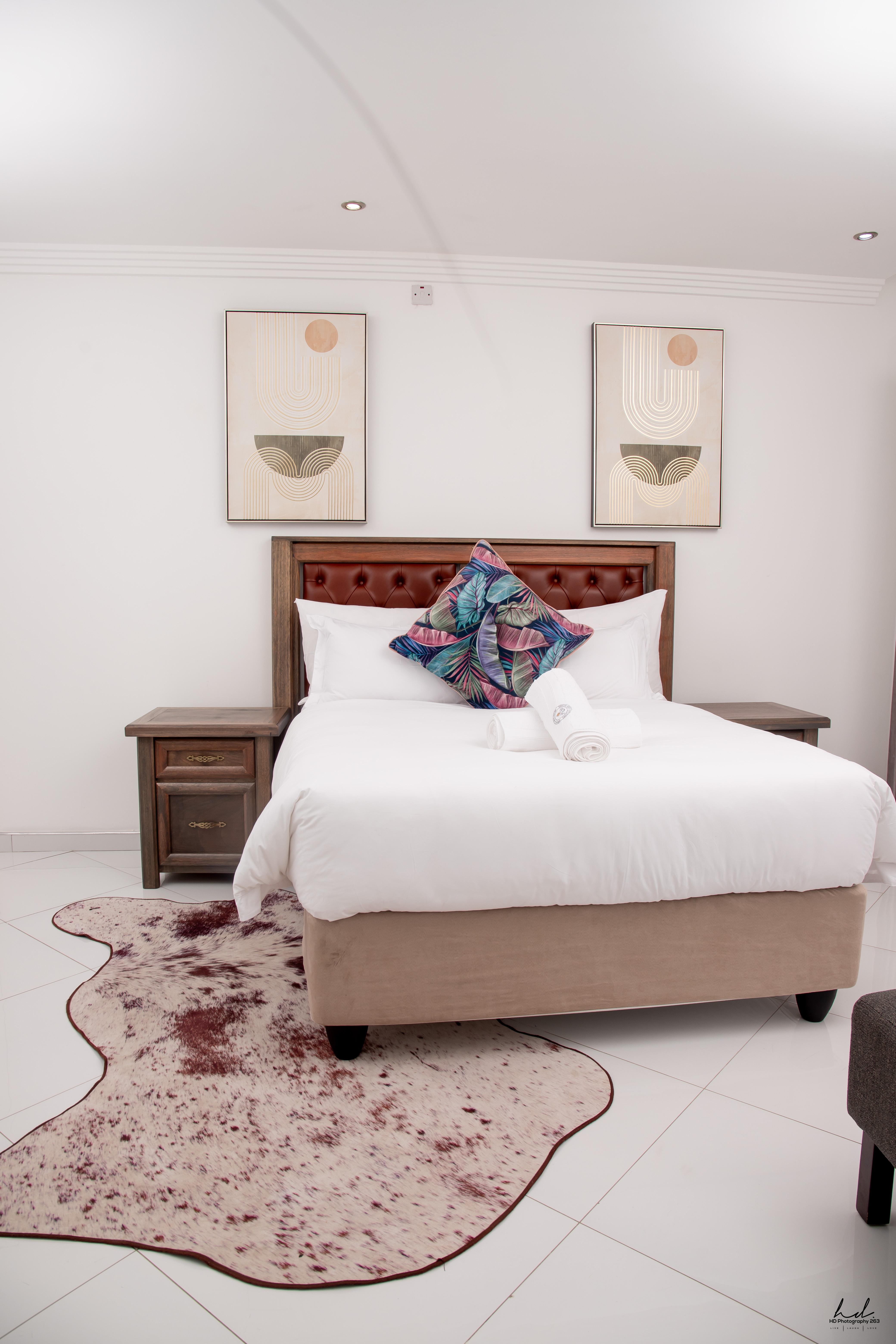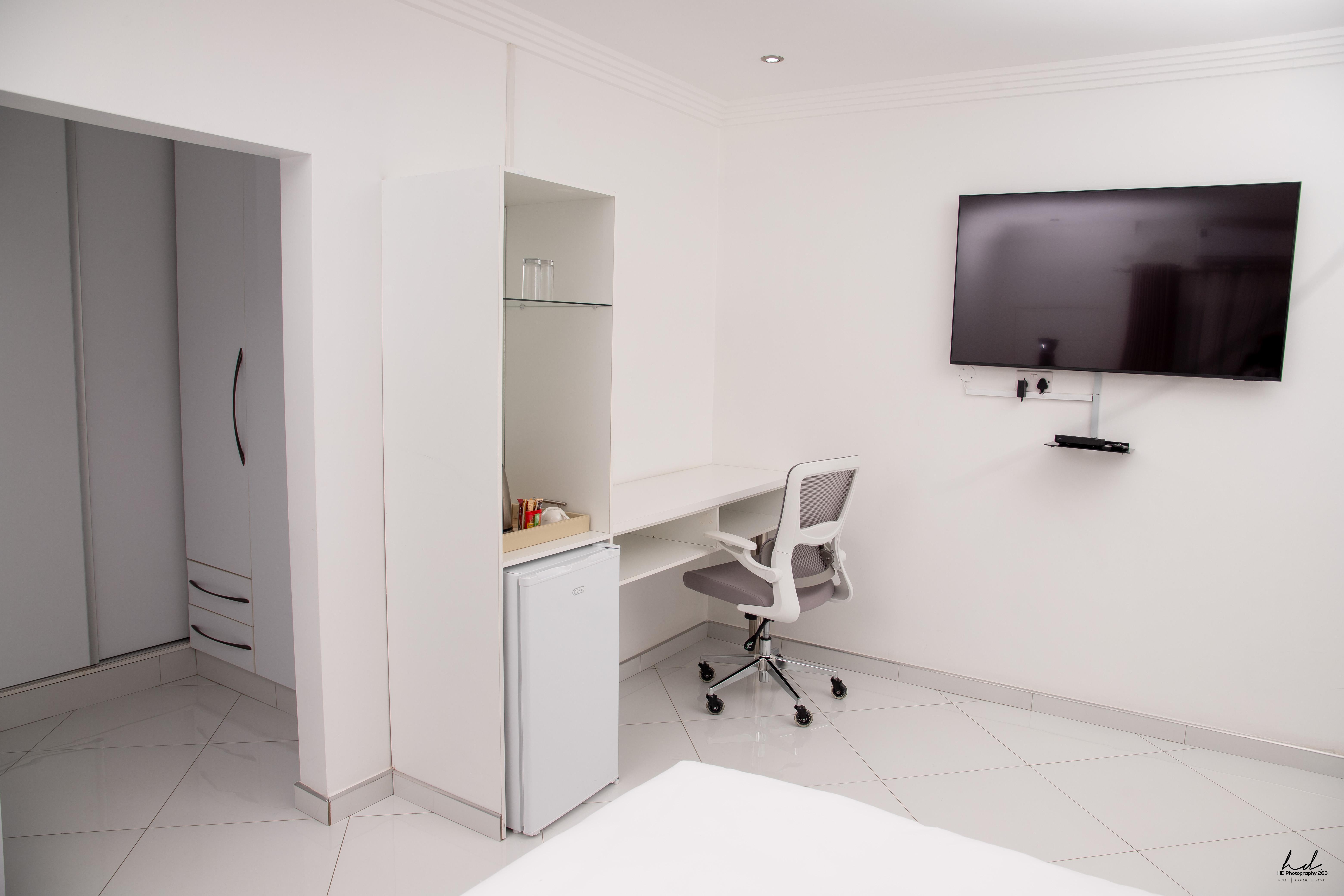 Traveling with a companion? Our Executive Twin Room is designed with sharing in mind. Featuring twin beds, a large 65” display, and a spacious twin workstation, it’s perfect for business partners, friends, or family. Enjoy the convenience of a walk-in closet, couch, and a rear entrance for privacy. The ensuite bathroom includes both a tub and shower, while AC, WiFi, DSTV, and a tea station complete this premium twin experience.