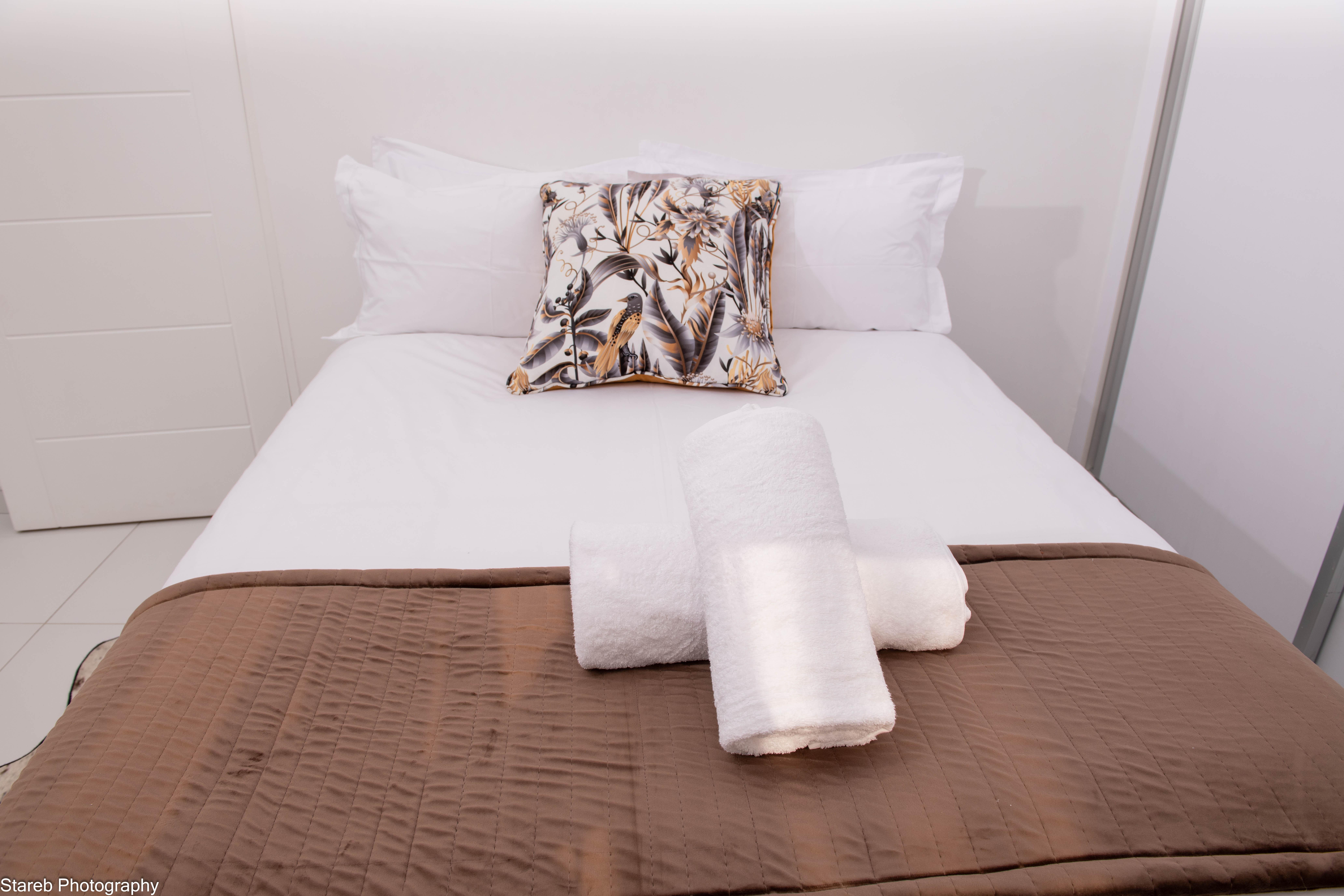 Feel at home in our fully furnished Two-Bedroom Apartment, perfect for families or long-term guests. The modern kitchen is fully equipped with an oven, microwave, air fryer, toaster, blender, electric & gas stove, pressure cooker, and electric grill. Exclusive cutlery and a full dining setup with dinner table make meal times special. With generous storage space, this apartment ensures convenience and comfort.