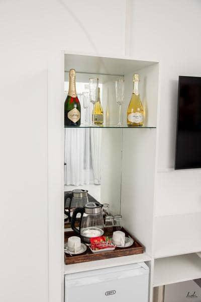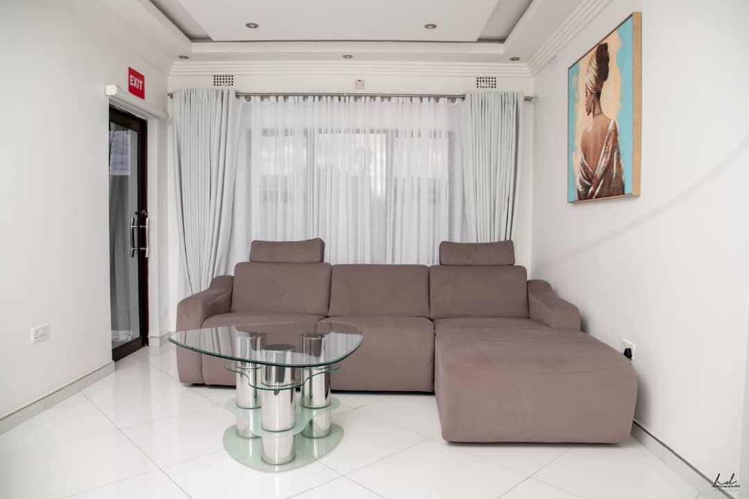 Step into pure luxury with our Presidential Suite, designed for guests who appreciate the finer things in life. Featuring a queen-sized bed, walk-in closet, and a private entrance, this spacious retreat combines elegance with comfort. Relax in the executive bathroom with a stand-alone tub, shower, and large mirrors, or unwind in the cozy couch area with a fridge, tea station, and full entertainment package including DSTV, Netflix, and YouTube. With air conditioning, a dedicated working space, and artistic portraits enhancing the décor, this suite is perfect for business or leisure.
